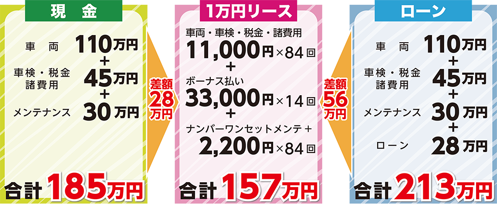 車検代や自動車税、オイル交換などのメンテナンス代が全部含まれた新しいクルマの買い方をご提案いたします。