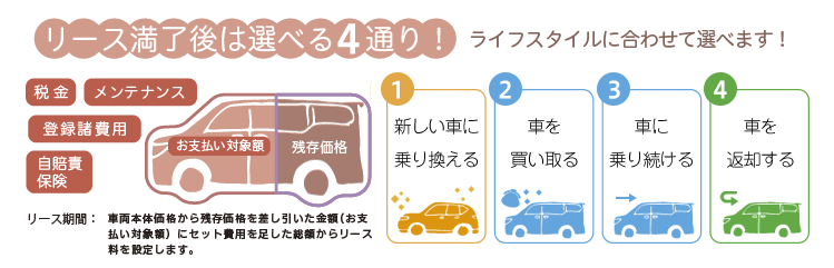 定額・低額で新車に乗れる全く新しいマイカーリースプランです。